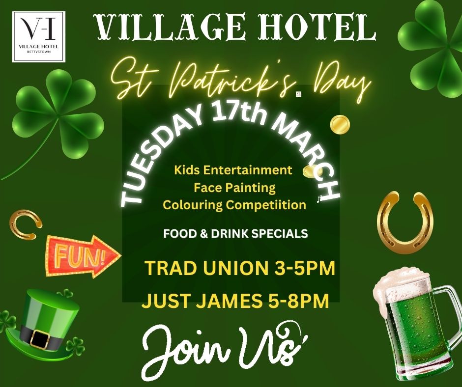 Join us at the Village Hotel this St Patrick’s day where we’ll have kids entertainment, food and drink specials and
